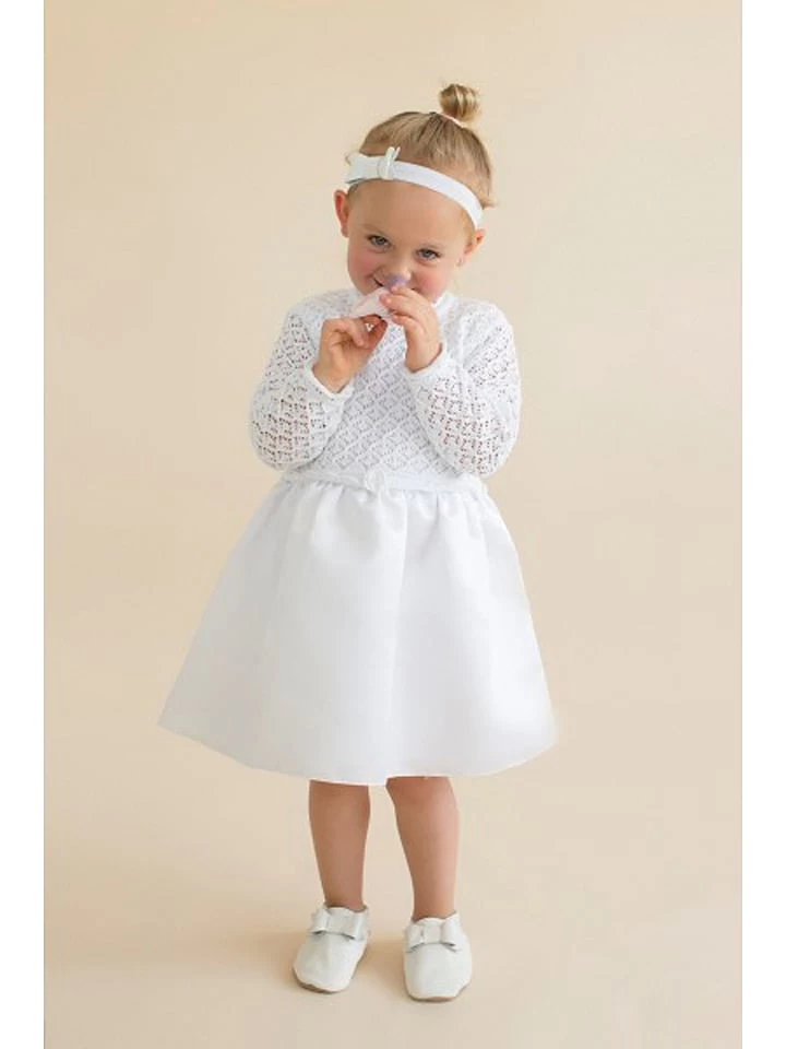 – Sluiting: knopenrij en satijnen strik aan de achterkant