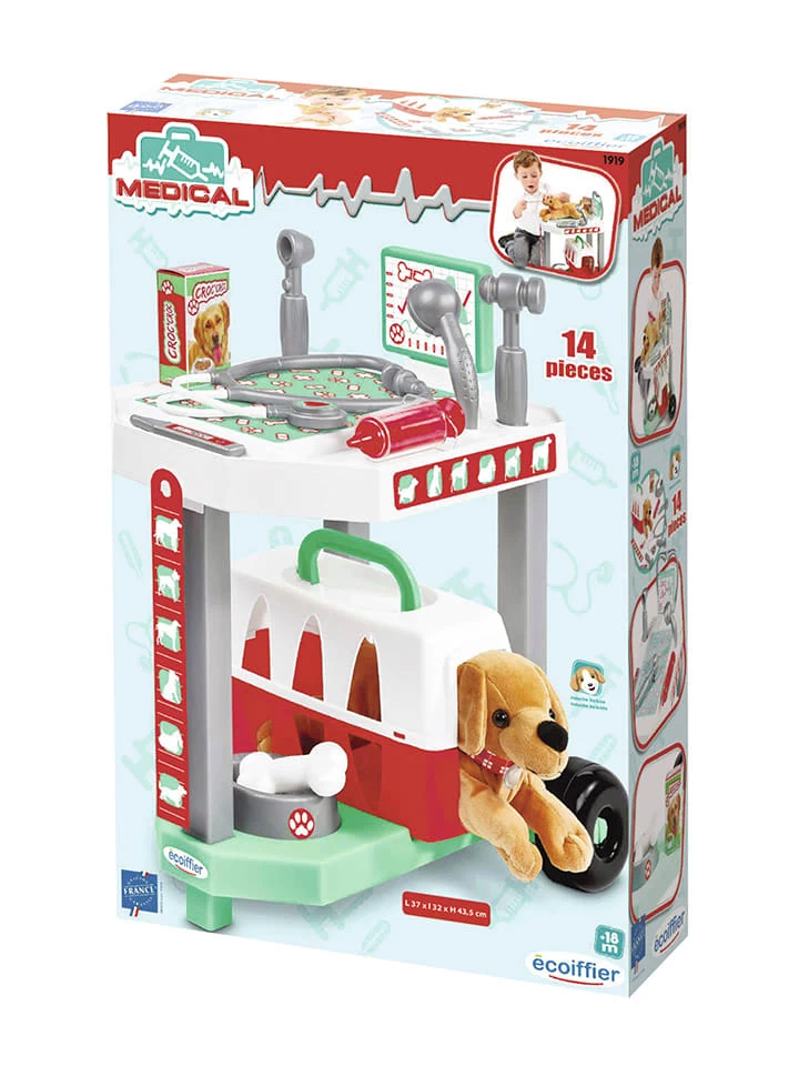 – Met onderzoekswagen, draagmand, voerbak, pluche hond en medische apparatuur